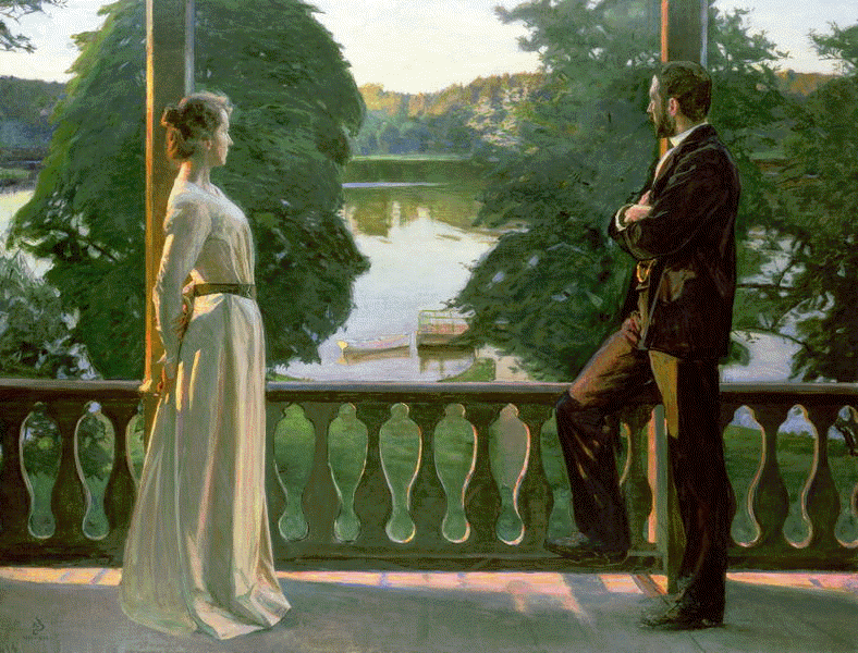 Hokusai's famous and stupendous wave, cresting at the British Museum. Van Gogh's colorful, lovely, tiny, lively bedroom at Arles, now no longer in Arles, but in Chicago. Richard Bergh's stately Nordic Summer Evening complete with a dim Nordic sun, hidden, hanging hidden there in the Goteborgs Konstmuseum. Rousseau's leafless walk in the forest. And ... Lord Love Me ... Modigliani's stupendous Nude with Necklace, the nude (and the necklace, some necklace!) hanging together now at the Guggenheim in New York, where, some day soon, before I pop off, I must, somehow, get to see.