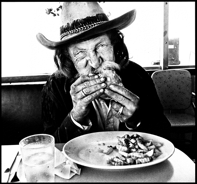 Jake lives on a ranch in Northern California. He's an ornery, profane old bastard, with a hankering for poker, lurid stories, and hootch which he makes himself. He calls it "Death Whisper." It's good not only for flaying the mind, but fortractor fuel, blowing stumps, and, diluted by a drip to a pint of water, as a treatment for almost anything that ailed their stock, from scours to lungworm.