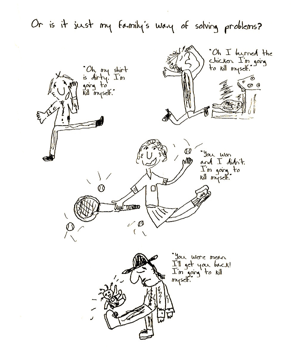 (Seven Stories)Depression? Swados' friends offer such comforting thoughts as, "Look at the people with AIDS. They really need medical research and attention," and "My father came over from Latvia with nothing. Could he go to a psychiatrist? No!" And my own personal favorite, offered as help to me by one of my friends when I was at the apogee: "Why don't you just stop being so self-indulgent. Jesus!"I would never poo-poo Swados comic book, for it shares with Art Spiegelman's Maus and R. Crumb's Why Bother? making a bizarre joining, the built-in contradiction of a depressing message stuck in one of the most comic forms, a 21st century Falstaff, Hamlet turning up as a late-night episode in Saturday Night Live.